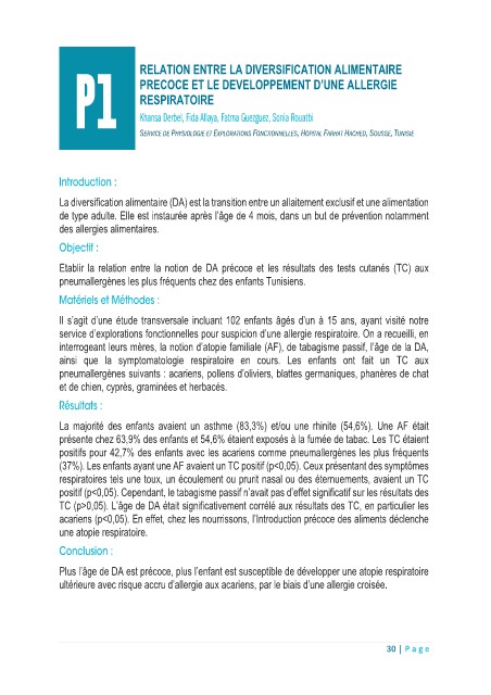 acariens (p<0,05). En effet, chez les nourrissons, l’Introduction précoce des aliments déclenche