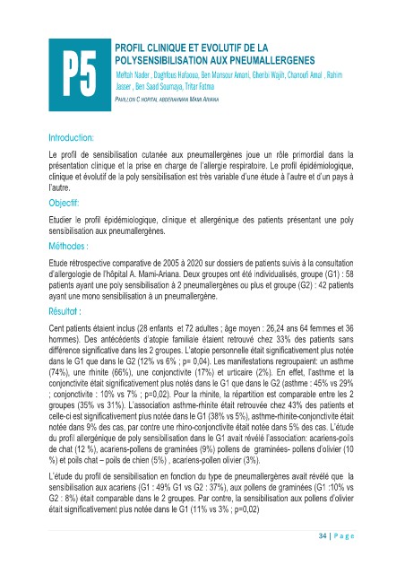 P5              PROFIL CLINIQUE ET EVOLUTIF DE LA