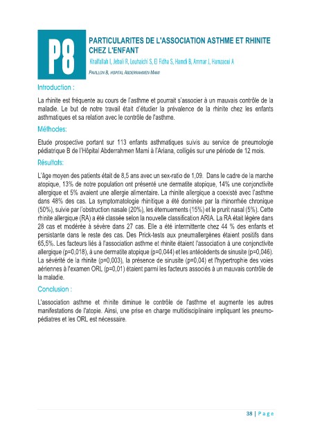 P8              PARTICULARITES DE L'ASSOCIATION ASTHME ET RHINITE