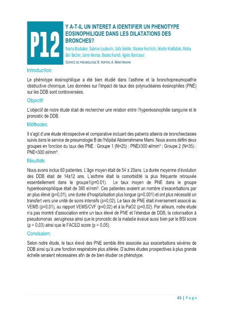 SERVICE DE PNEUMOLOGIE B. HOPITAL A. MAMI ARIANA