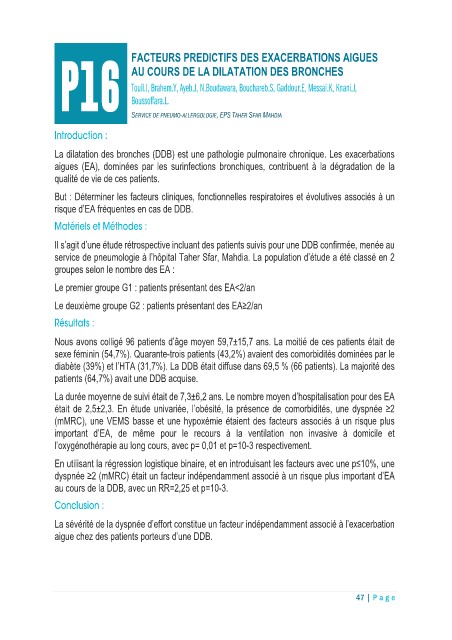 P16                FACTEURS PREDICTIFS DES EXACERBATIONS AIGUES
