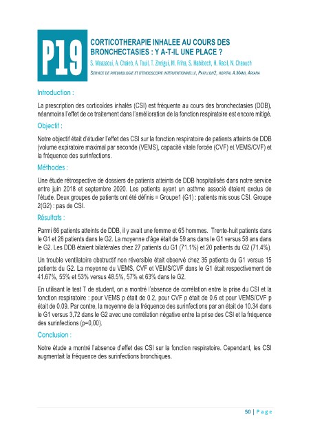 P19  SERVICE DE PNEUMOLOGIE ET D’ENDOSCOPIE INTERVENTIONNELLE, PAVILLON2, HOPITAL A.MAMI, ARIANA