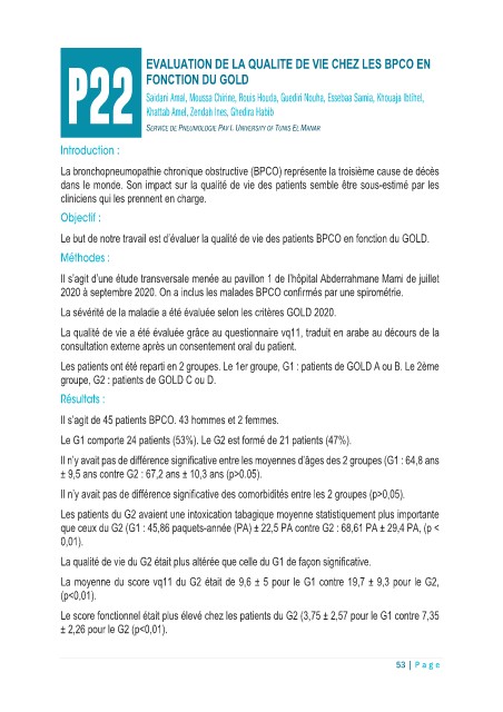 P22 EVALUATION DE LA QUALITE DE VIE CHEZ LES BPCO EN
