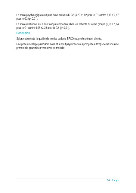 Selon notre étude la qualité de vie des patients BPCO est profondément altérée.