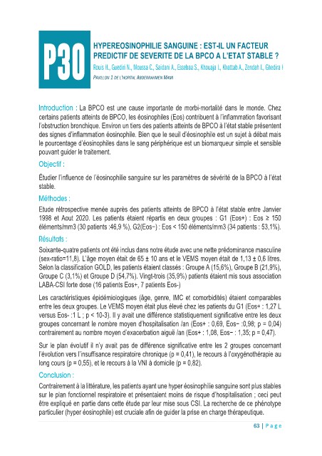 Introduction : La BPCO est une cause importante de morbi-mortalité dans le monde. Chez