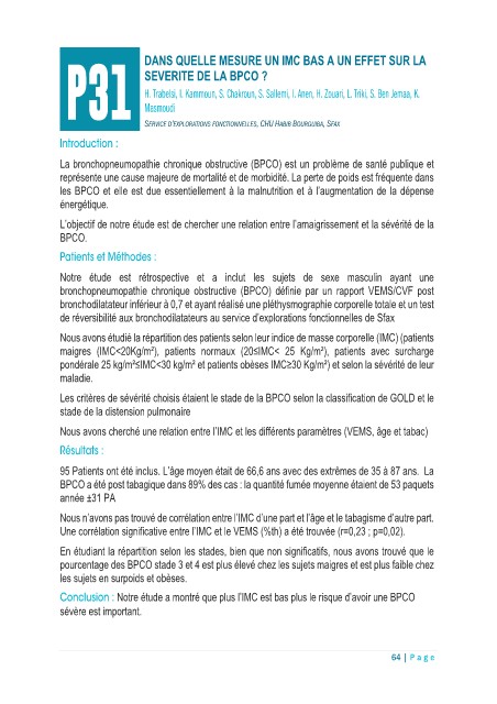 P31 DANS QUELLE MESURE UN IMC BAS A UN EFFET SUR LA