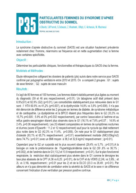 confirmé par polygraphie ventilatoire entre 2010 et 2015. On a comparé 2 groupes : G1 : sujets