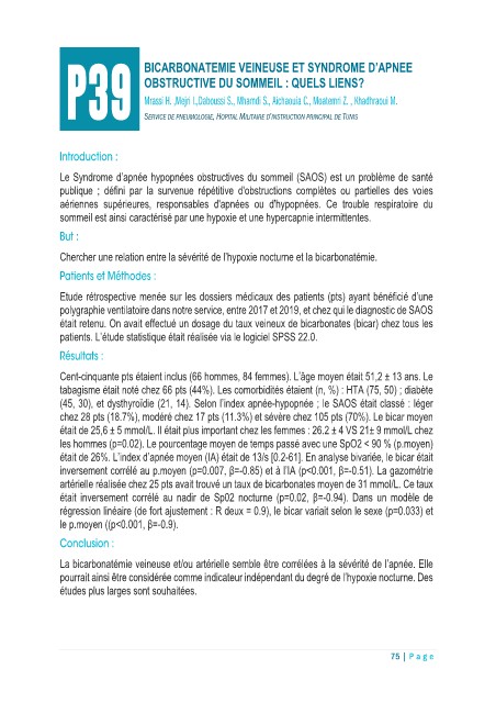 P39 SERVICE DE PNEUMOLOGIE, HOPITAL MILITAIRE D’INSTRUCTION PRINCIPAL DE TUNIS