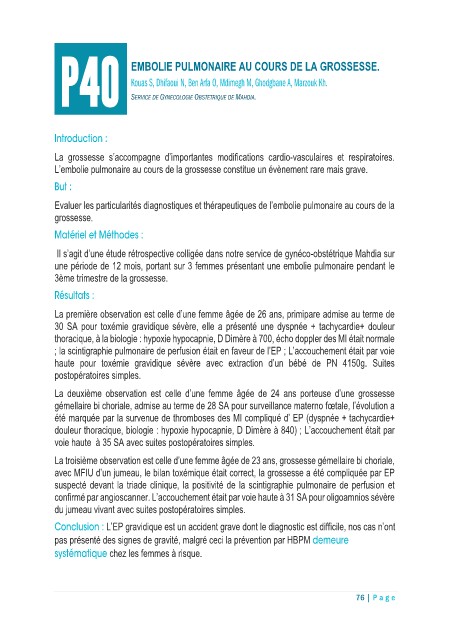 Conclusion : L’EP gravidique est un accident grave dont le diagnostic est difficile, nos cas n’ont