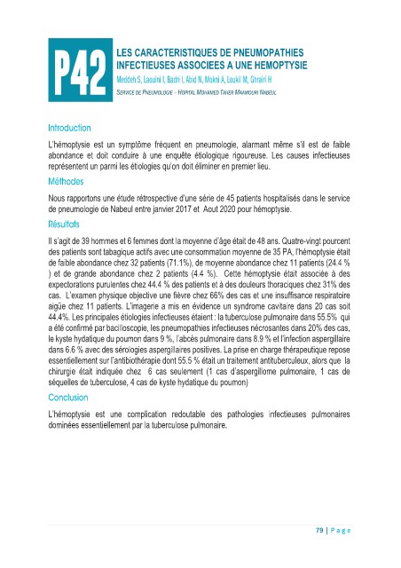 P42 SERVICE DE PNEUMOLOGIE – HOPITAL MOHAMED TAHER MAAMOURI NABEUL
