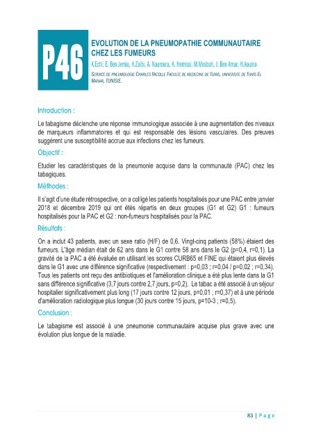 P46 EVOLUTION DE LA PNEUMOPATHIE COMMUNAUTAIRE