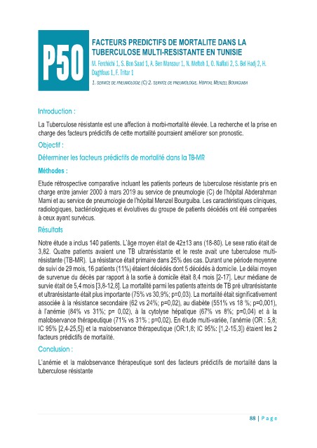 P50                FACTEURS PREDICTIFS DE MORTALITE DANS LA
