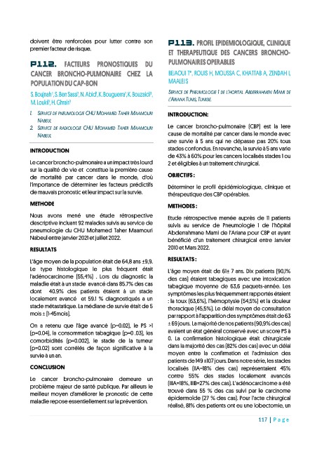 P112. FACTEURS PRONOSTIQUES DU PULMONAIRES OPERABLES