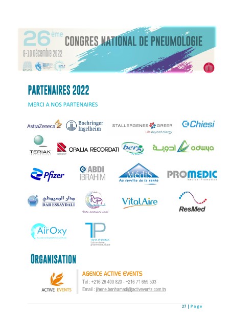 PARTENAIRES 2022 MERCI A NOS PARTENAIRES Organisation AGENCE ACTIVE EVENTS Tel : +216 26 400 820 - +216 71 659 503 Email : jihene.benhamadi@activevents.com.tn 27 | P a ge