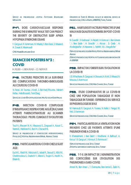 SEANCE DE POSTERS N°3 : 2 SERVICE PNEUMOLOGIE, HOPITAL FATTOUMA BOURGUIBA MONASTIR