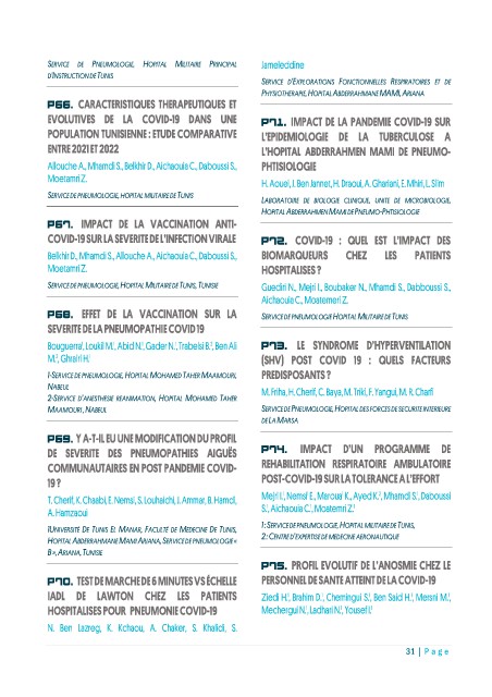 EFFET DE LA VACCINATION SUR LA SERVICE DE PNEUMOLOGIE HOPITAL MILITAIRE DE TUNIS