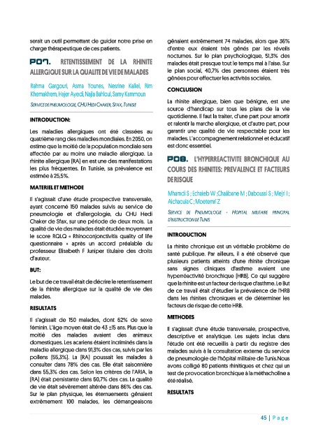 SERVICE DE PNEUMOLOGIE, CHU HEDI CHAKER, SFAX, TUNISIE   La rhinite allergique, bien que bénigne, est une