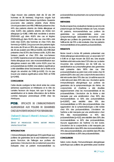 P09.  EFFICACITE DE  L'IMMUNOTHERAPIE               monosensibilisés vs 40% des polysensibilisés. Une