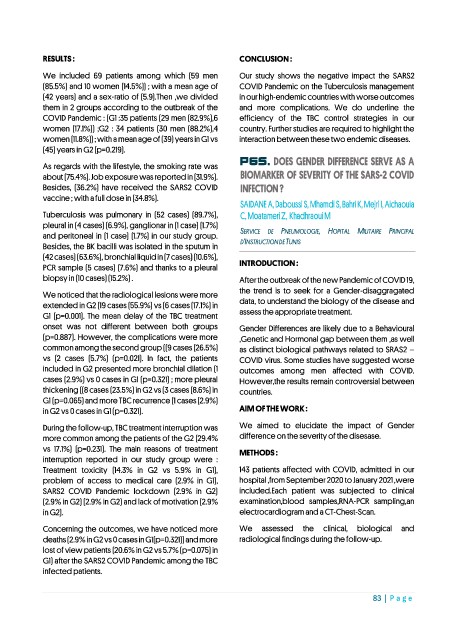 COVID Pandemic : (G1 :35 patients (29 men (82.9%),6 efficiency of the TBC control strategies in our