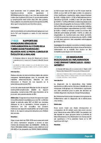 P62           RAPPORTS DES                         .Le NLR était associé à des séquelles radiologiques