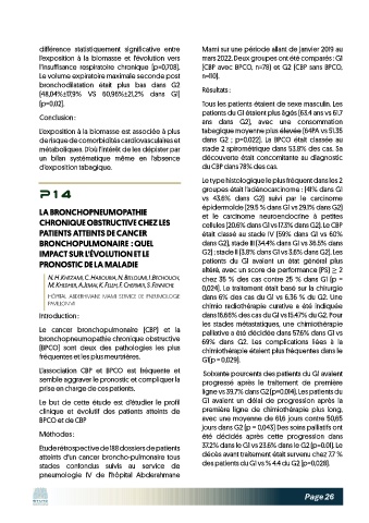 P14 vs 43.6% dans G2) suivi par le carcinome