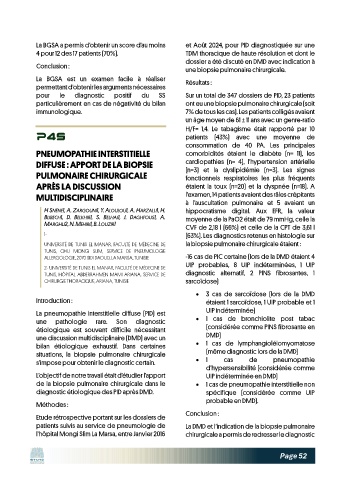 UNIVERSITÉ DE TUNIS EL MANAR, FACULTÉ DE MÉDECINE DE la biopsie pulmonaire chirurgicale étaient :
