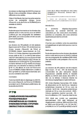 reconnues. Le dépistage du SAHOS se base sur YOSRA BELLIL1, MRASSI HANA1,MOUSSA INES1, DJEBALI